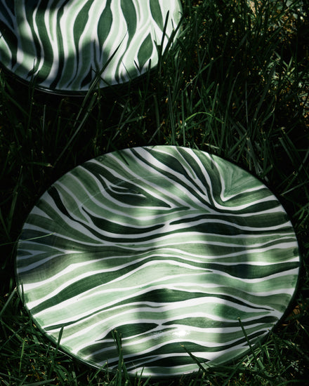 Introducing our Animal Print Hand-Painted Green Ceramic Dinner Plate. This stunning ceramic plate features a bold animal print design in rich green, adding a unique touch of artistry to your table.