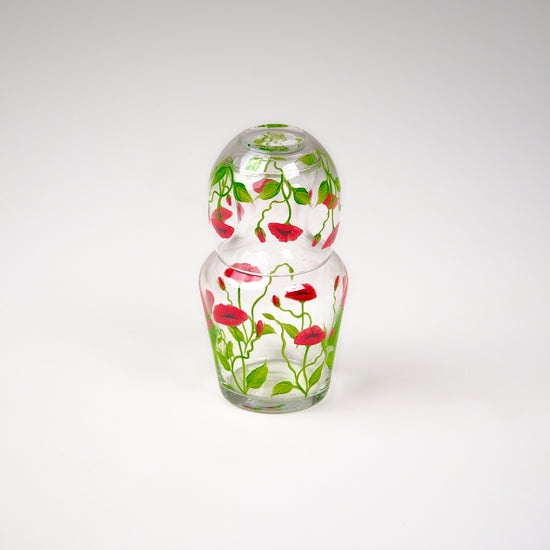 Bedside Table Water Hand-painted Glass Set Poppy Red