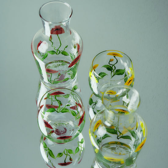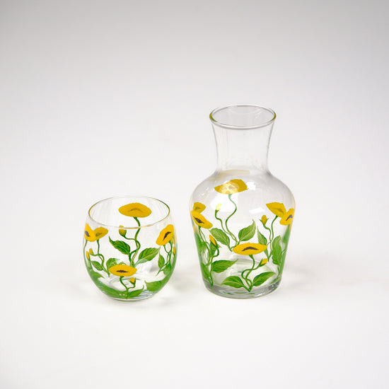 Bedside Table Water Hand-Painted Glass Set Poppy Yellow
