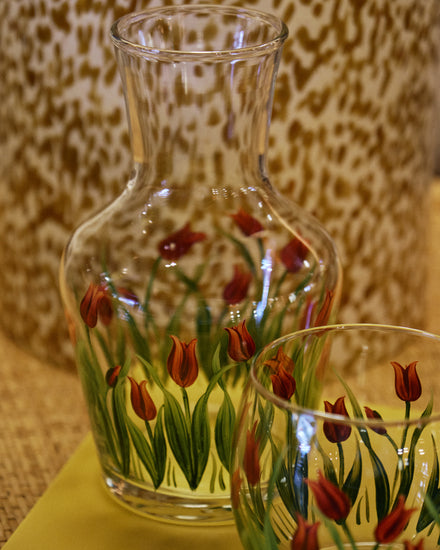 Bedside Table Water Hand-painted Glass Set Tulip Red