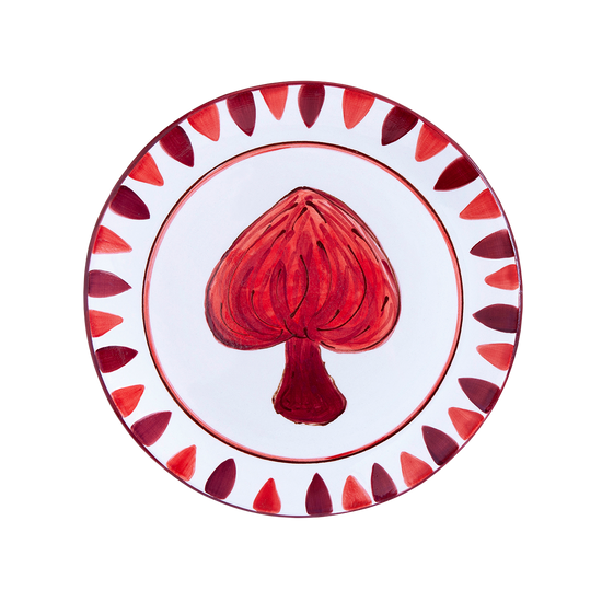 Our Mushroom Hand-Painted Bordeaux Ceramic Dinner Plates are specially made to complement our Wonderland Linen Collection.