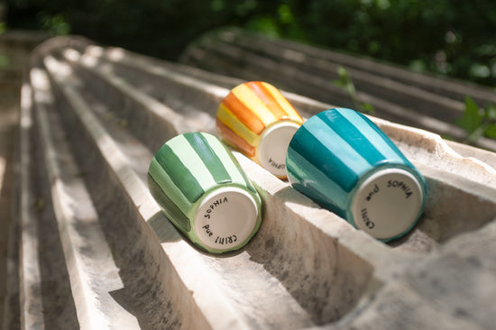 Care instructions: To ensure the longevity of your Hand-Painted Ceramic Cups we recommend washing them by hand with mild soap and warm water.