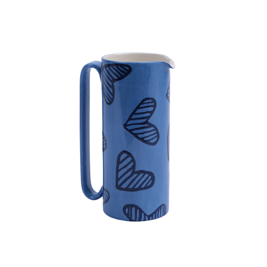 Hearts Hand-Painted Blue Ceramic Tall Carafe