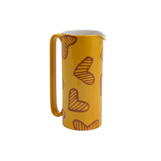 Hearts Hand-Painted Yellow Ceramic Tall Carafe