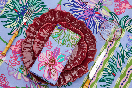 It is important to keep our linens clean and fresh looking while preserving their vibrant colors. We recommend cold washing by hand or machine washing on a delicate cycle using mild detergent. Air-dry or iron on low temperature for a crisp and formal look.