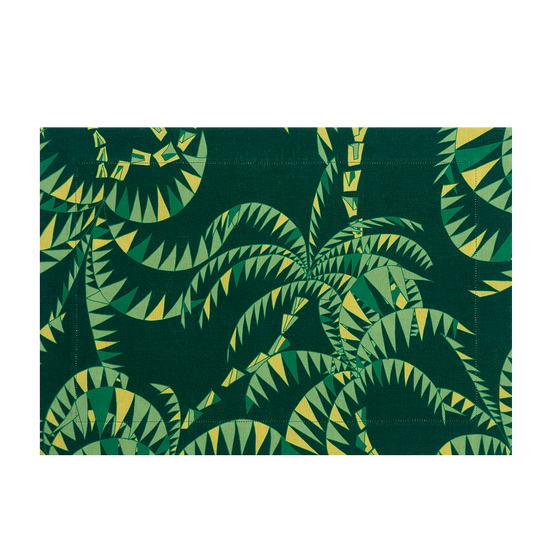 Set of 2 Palm Trees Dark Green Linen Placemats