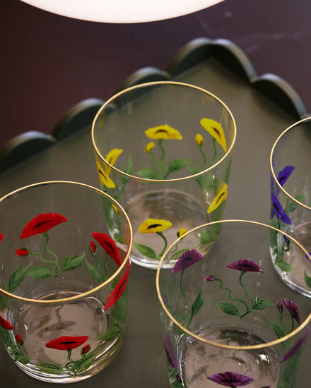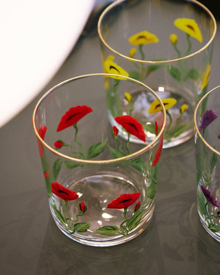 Set of 4 Poppy Hand-painted Tumbler Glass