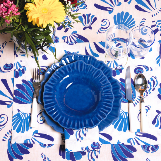 Our Shells linen tablecloth is perfect for creating a seaside ambiance.