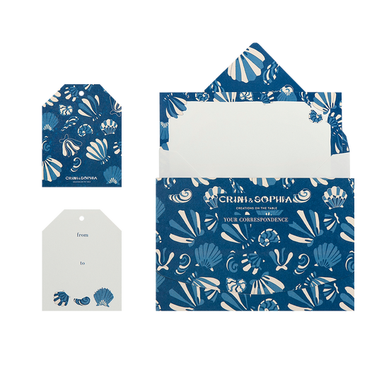 Personalize your gifts with our Shells correspondence. The box includes 10 cards, 10 envelopes and 10 gift tags.